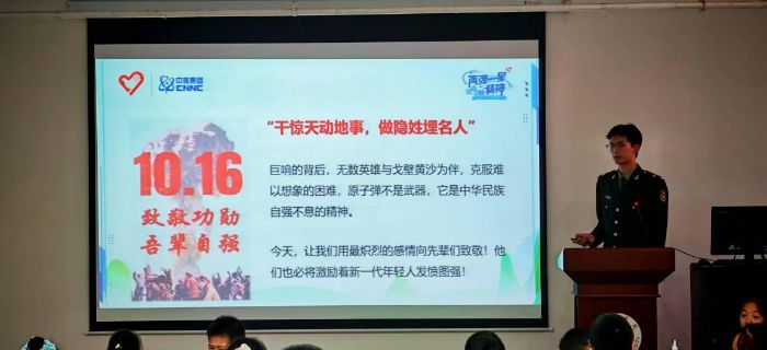 宣讲铸魂:深植两弹一星精神礼赞核工辉煌成就理论宣讲环节以“两弹一星”精神为核心,构建“精神深植+成就溯源”双轨育人体系。宣讲团成员以邓稼先隐姓埋名钻研核弹、钱学森冲破阻碍归国报国等科学家事迹为线索,深入阐释“热爱祖国、无私奉献,自力更生、艰苦奋斗,大力协同、勇于登攀”的“两弹一星”精神内核,让抽象精神变得可感、可触、可学。