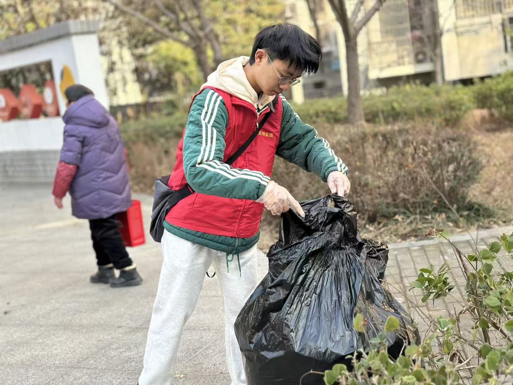 1月15日,“春风化雨,打造和谐社区”实践团队在燕河湾小区开展专项志愿服务活动。环境整治组身着红马甲,手持清洁工具,对绿化带、楼栋周边等卫生死角进行集中清理,并全程记录整治前后对比画面,吸引多位居民主动加入清扫行列。拍摄剪辑组深入楼道,跟拍杂物清理过程,采集公共空间规整等安全素材,为线上宣传储备内容。物业门口互动区则通过安全知识趣味问答、转盘抽奖等形式,围绕日常安全知识展开互动,现场亲子家庭踊跃参与。