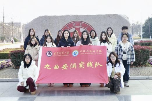 图为实践团队在曲阜师范大学校徽石前合影。夏英语供图