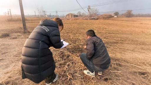 图为实践队员向农田里村民进行访谈并填写调查问卷。张韶涵供图