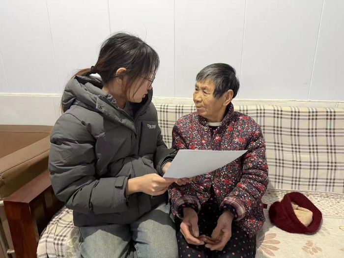 图为实践队员与村民交谈并填写调查问卷。李志贞供图