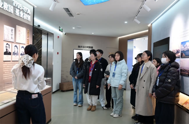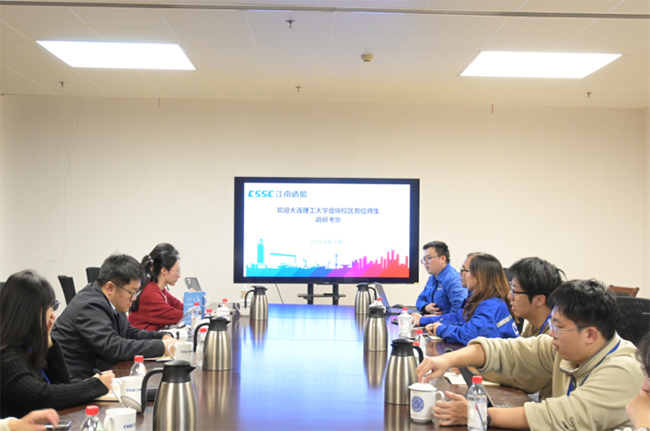 第四日下午,团队走访了江南造船厂,该企业是国家级企业技术中心,主要从事民用、军用船舶的研发与生产,见证了中国船舶工业的发展历程。在工作人员的带领下,成员们观看了企业宣传片,参观了江南造船集团历史纪念馆、展示大厅等场所,随后近距离观摩了正在建造中的船舶,详细了解了甲板、舱室等部位的结构与功能,对船舶建造的流程与技术有了更为深入的认识。交流中,企业相关负责人围绕江南造船厂的基本情况、中国船舶行业布局、企业发展历程、组织架构、产品体系、地理位置及应届生招聘、薪资待遇等内容,向师生们介绍了企业的发展蓝图。