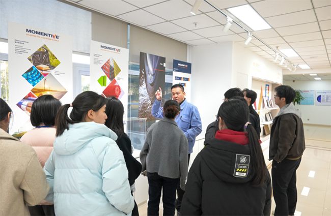 当日下午,实践团走访了迈图(上海)投资有限公司,该公司深耕有机硅、陶瓷材料领域,凭借强劲的创新能力在行业内占据重要地位。交流座谈环节,许总经理围绕企业发展特色、人才培养模式、大学生实习实践政策及校企科创合作等重点议题,向我校师生进行了全面、细致的分享。随后,在黄岩经理的引领下,全体师生依次参观了企业中控室、产品展示区、分析测试中心以及企业文化长廊等核心区域,了解到该公司拥有3000余种各类产品,产品体系的丰富度和品类齐全度均处于国内同行业领先地位,充分体现了企业强大的研发实力和市场竞争力。