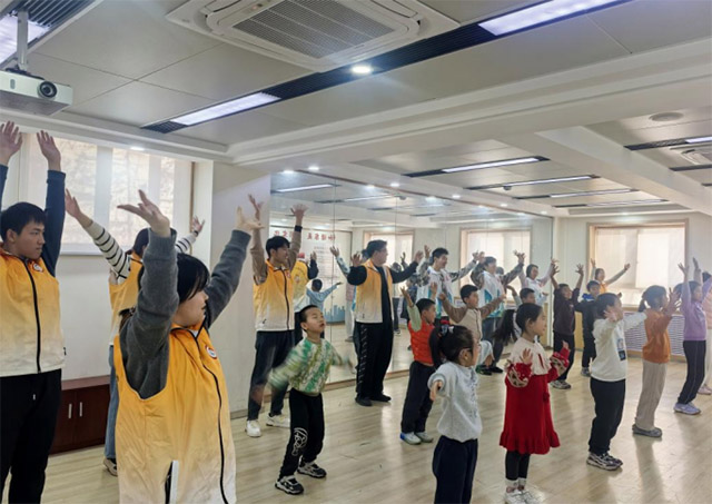 课程之余,短暂的体能锻炼环节为学习注入活力。志愿者们带领孩子们一同跳起体操,舒展身体、放松心情,在欢声笑语中增进了彼此的默契与情谊,为后续的学习储备了充足精力。