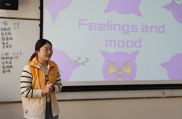 下午的课堂精彩纷呈。在《趣味英语》课上,山东大学的刘璇同学通过情景模拟、互动游戏等方式,带领孩子们学习表达情绪的英文词汇。孩子们在表演与游戏中轻松掌握了“happy”“sad”“shy”“sleepy”等单词,笑声与朗读声交织,课堂气氛活跃而温馨。