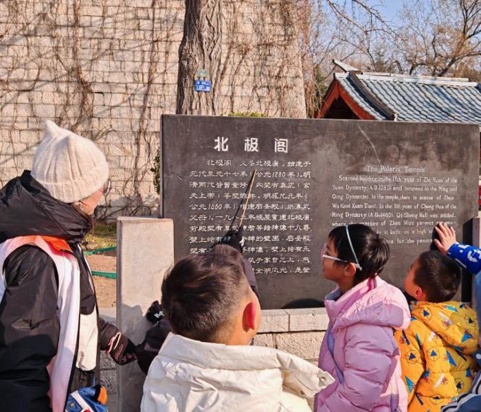 冬令营不仅局限于教室,更带领孩子们走进真实的文化场景。志愿者们陪同“小候鸟”们前往大明湖景区开展文化研学。孩子们在湖畔吟诵古诗、观察自然,聆听荷花灯背后的文化故事,在实景中感悟诗词意境,实现“游中学、学中悟”。这种沉浸式体验让文化传承更加鲜活,也让孩子们在亲近自然的过程中释放天真、收获快乐。