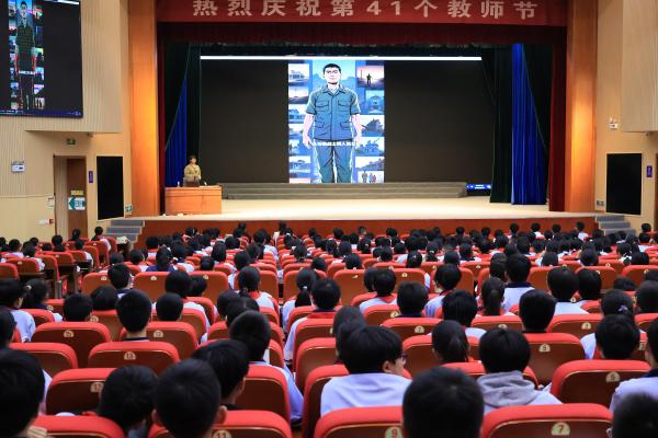 2025年9月30日,正值第九个烈士纪念日,长安大学退役大学生士兵带领团队携手AI创意文创产品,来到陕西省安康市汉滨区汉滨初级中学,开展题为“忆峥嵘岁月,传承红色抗战精神”的爱国主义教育宣讲活动。数百名七、八年级学生在老师的陪同下,聆听了来自军营的真实故事,现场气氛庄严而热烈。