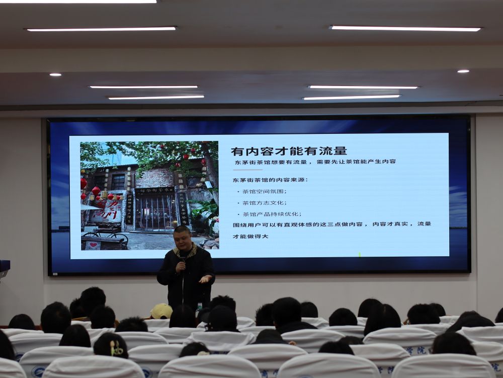 12月18日,由湖南科技大学创新创业学院主办、商学院承办的创新创业大讲堂第一百二十八讲在第三教学楼101学术报告厅开讲。本次讲堂以“从宿舍到商业战场:一个连续创业者的18年实战心法”为主题,邀请到百万粉丝博主、现象级文旅IP“东茅街茶馆”创始合伙人兼操盘手杨柳担任主讲人,为在校学子带来了一场干货满满的创业分享。